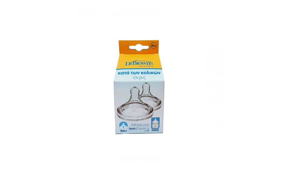 Dr Brown's Natural Flow Θηλές Κατά Των Κολικών Μέτρια Ροή 3m+ Για Μπιμπερό Με Φαρδύ Λαιμό, 2 Τεμάχια