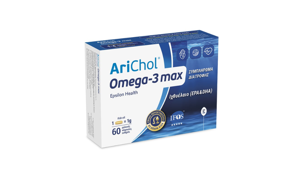 Συμπλήρωμα διατροφής με ιχθυέλαιο της εταιρείας Epsilon Health, το οποίο παρέχει ωμέγα 3 λιπαρά οξέα.